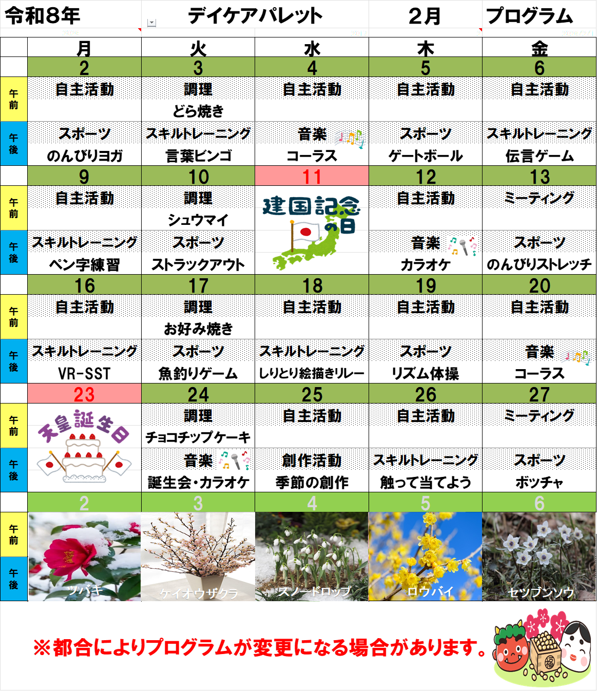 デイケアパレット2月プログラムになります。